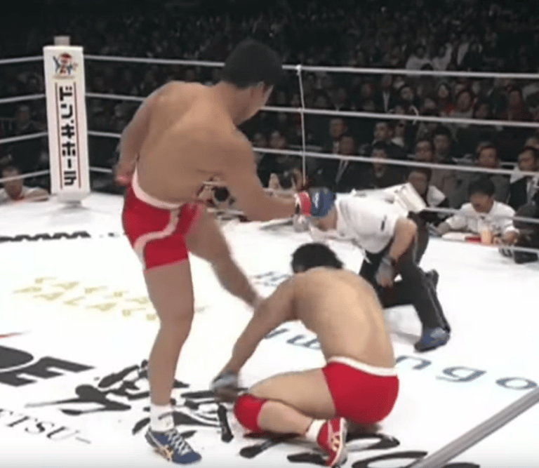 North South Knees, Head Stomps, and Rope grabs... they fought knowing it could be brain damage and last career match...PRIDE Fighters were built different. Many Pride fighters later became UFC Champions easily.